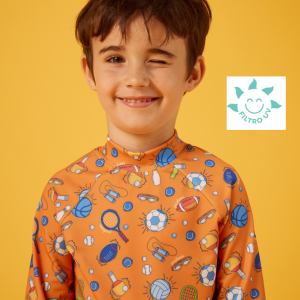 Armá el conjunto con la remera de agua UV, el poncho playero y el piluso Sports.